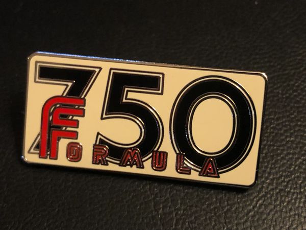 Express your passion for the Honda cb750 with the Formula 750 hard enamel pin. Bright silver color background with two military clutches in the backing. Pins measure .75"h X 1.5"L. Price includes US shipping.